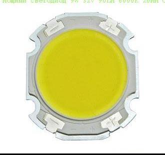 Мощный светодиод 9W 32V 90LM 6000K 20MM COBМощный светодиод 9W 32V 90LM 6000K 20MM COB
