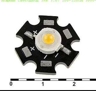 Мощный светодиод 3WR 3.6V 200-220LM 3000-3500K